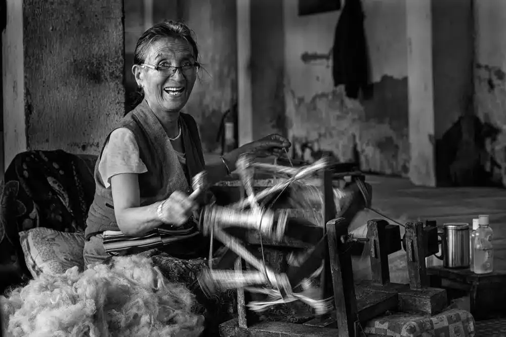 Each photograph tells a powerful story, highlighting the resilience and strength of women. One such image captures the Darjeeling Tibetan Self Help Center, where Tibetan refugees have made their home, dreaming of a free Tibet that remains elusive.
